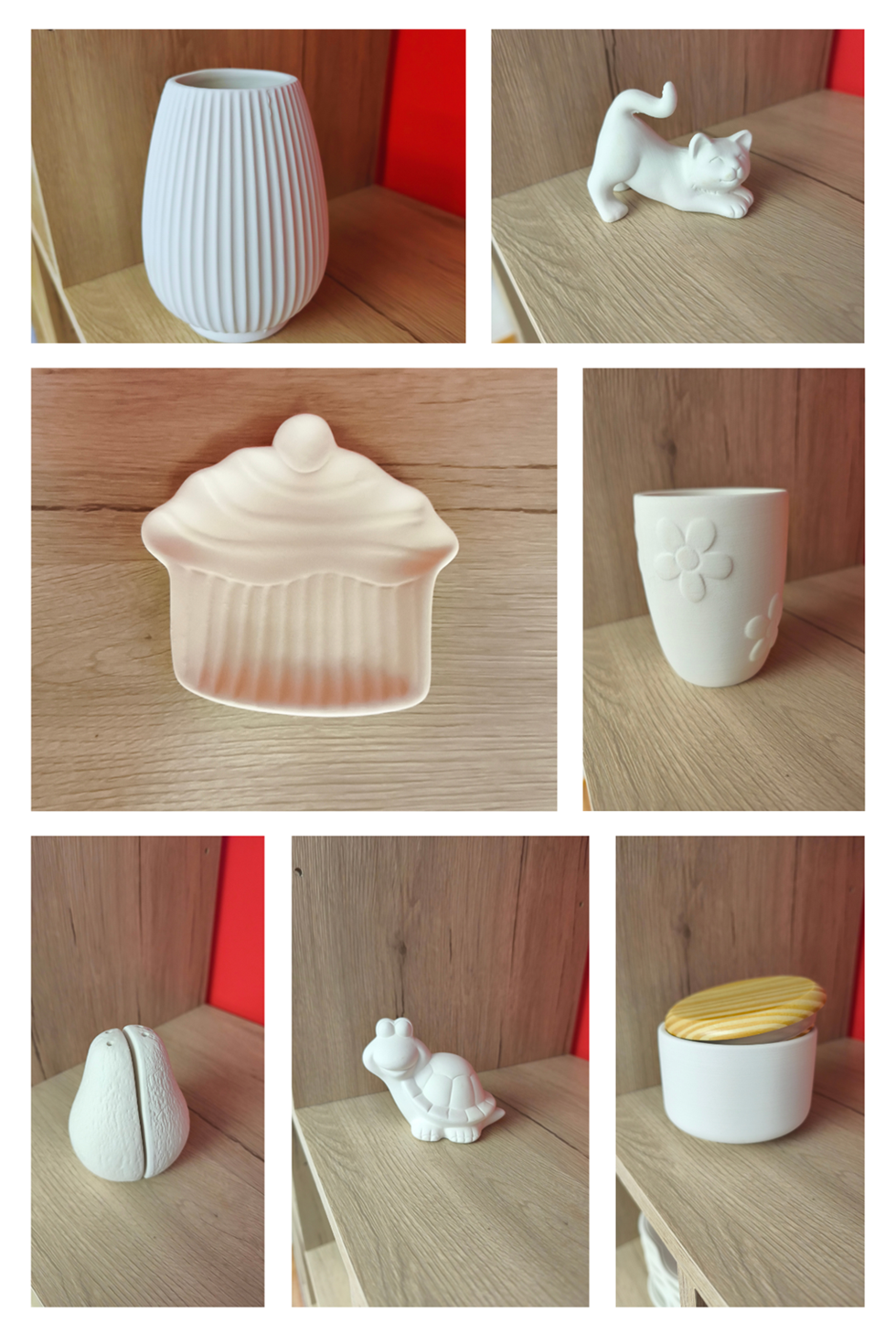 Es folgen noch weitere Bilder von fertigen Keramikstücken, unterschiedlichen Farben, Maltechniken und eine Auswahl unserer Rohlinge